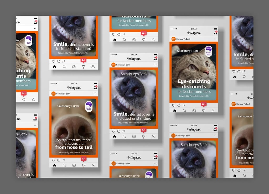 By strategically separating each product benefit into individual ads, we ensured that each aspect — such as dental care, 24/7 vet assistance and vet fees payed directly — was highlighted in detail. This approach allowed us to create a cohesive narrative across the campaign, demonstrating how every part of a pet's health is covered.